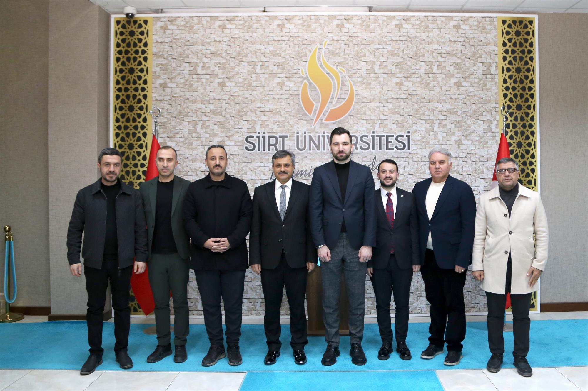Rektörümüz Prof. Dr. Nihat Şındak, Siirt Milletvekili Mervan Gül, Ak Parti İl Başkanı Bahri Caner Özturan, AK Parti Gençlik Kolları Genel Başkan Yardımcısı ve Teşkilat Başkanı Osman Nuri Nazlıer, AK Parti Siirt İl Gençlik Kolları Başkanı Murat Gül ve beraberindeki heyeti rektörlük makamında ağırladı.